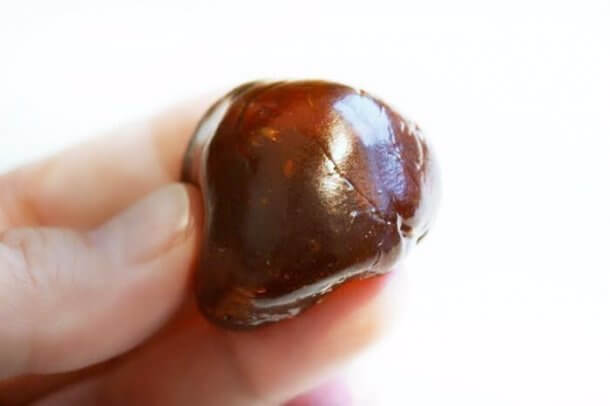 Using a wooden spoon, spatula, or even your hands, grab a small amount of the sugar wax from the bowl, and roll between your hands, forming a ball.